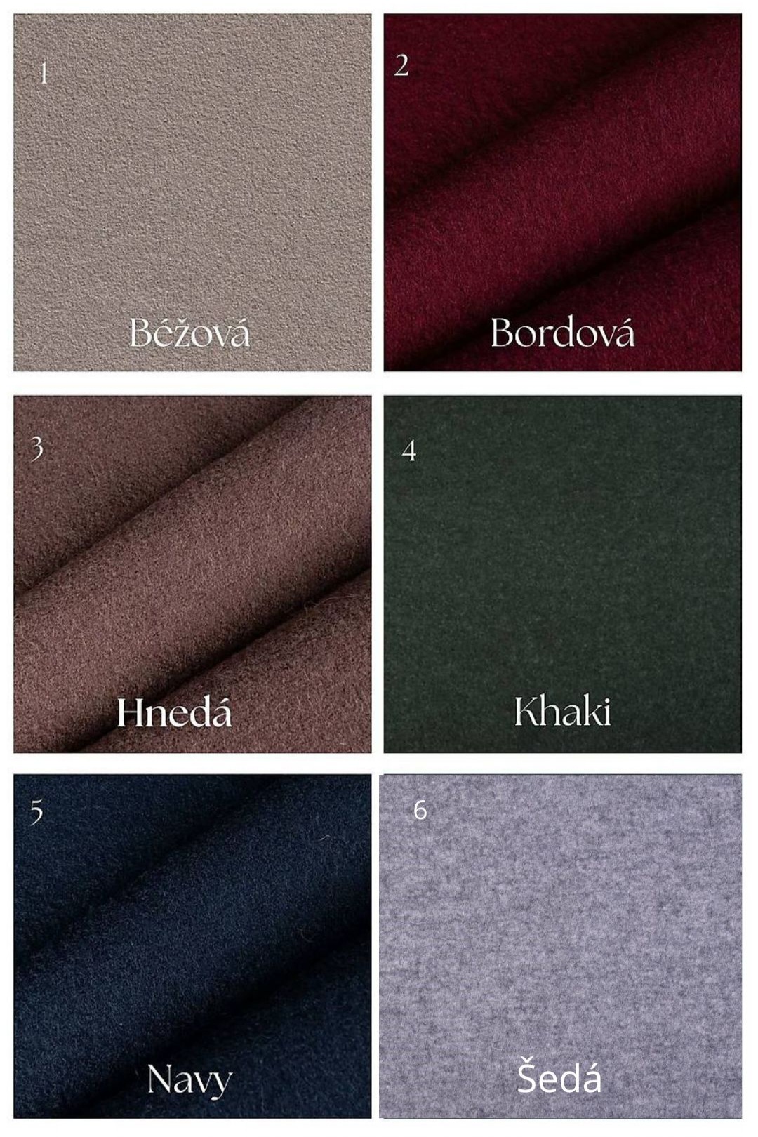 Kabát sa dá objednať v rôznych farebných prevedeniach podľa vzorkovníka.Vždy je možné upraviť dolný kraj alebo dĺžku rukáva podľa vlastných rozmerov.